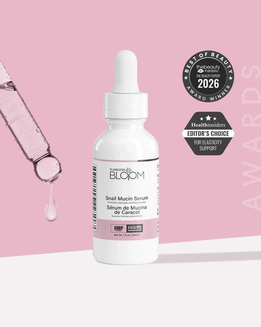 Flawless Bloom Snail Mucin Serum helps restore hydration, improve skin smoothness, and support a calmer, softer, more supple complexion with consistent daily use.*